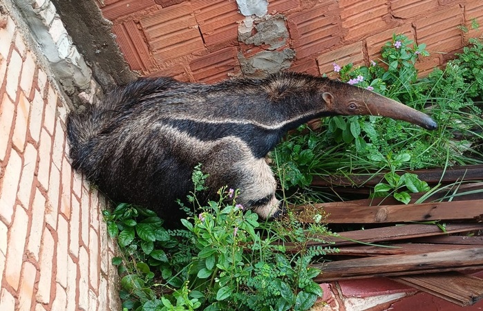 Tamanduá é flagrado por moradores em plena área central de Nova Andradina
