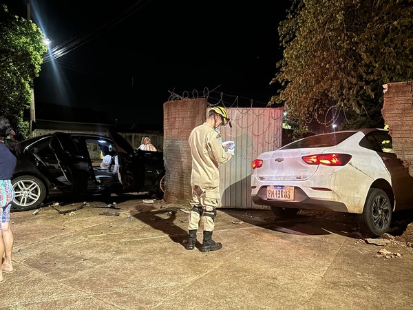 Nova Andradina - veículos se chocam, ficam fora de controle e batem em muro de imóvel