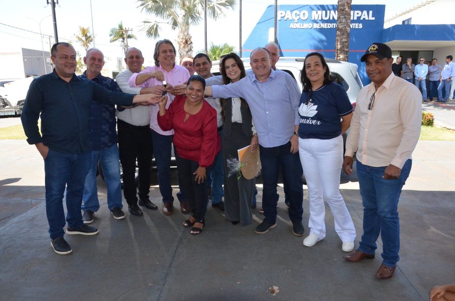 Na tarde da última quinta-feira (25), o prefeito Clóvis do Banco, acompanhado da primeira-dama Marilza Nunes, do deputado estadual Pedro Arlei Caravina e da deputada estadual Mara Caseiro, realizou a entrega de um veículo Chevrolet Spin, zero quilômetro, com sete lugares, destinado à Secretaria de Saúde.