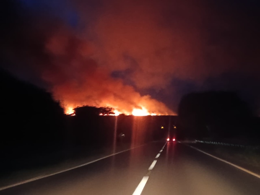 As chamas podiam ser vistas de longe e, à medida que os veículos se aproximavam da área atingida, o medo aumentava devido à intensidade do fogo e à fumaça que tomava parte da rodovia.