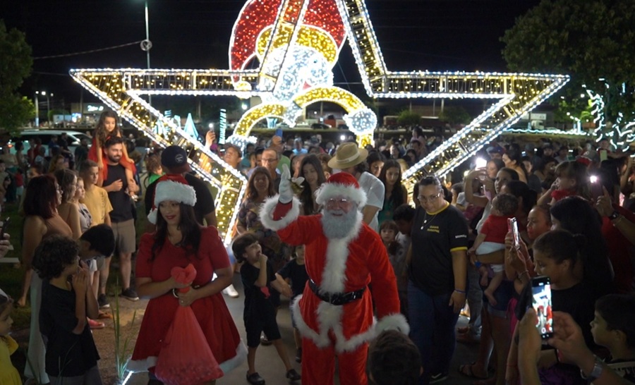 A magia do Natal tomou conta de Batayporã na noite desta sexta-feira (5) durante a inauguração oficial da decoração natalina de 2025. O evento, realizado em frente ao Paço Municipal, reuniu grande público e emocionou crianças e famílias com a programação especial preparada pela Prefeitura.