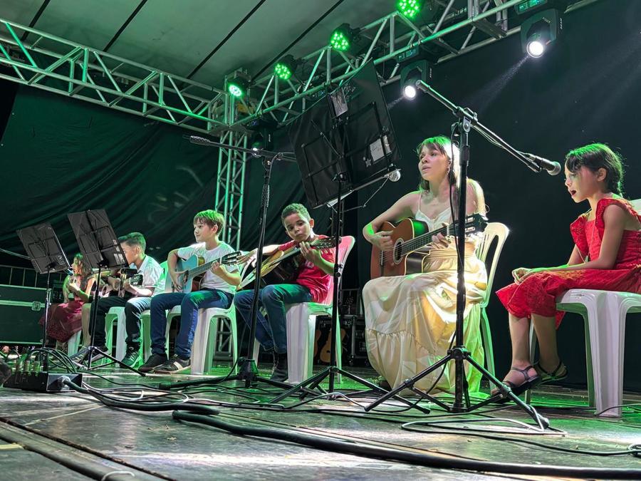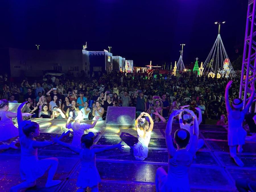 A programação especial de Natal de Batayporã seguiu no último sábado (6) com mais uma noite repleta de atrações culturais e interação das famílias. Em frente ao Paço Municipal, a população lotou os arredores para acompanhar apresentações da Rede Municipal de Ensino e dos projetos culturais da Secretaria de Educação, Cultura, Esporte e Lazer (Secel), que envolveram oficinas de balé, ginástica rítmica, canto, coral e violão.