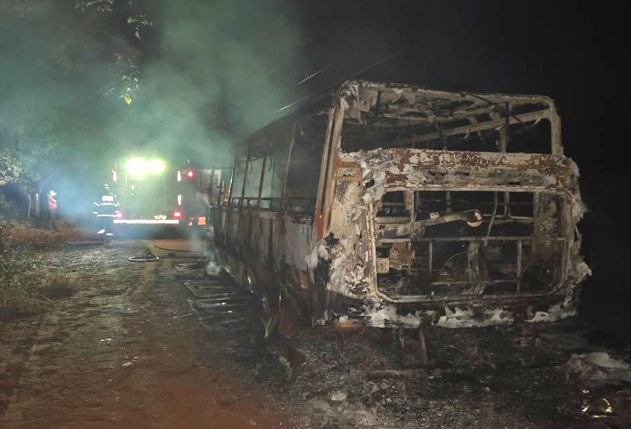 O Corpo de Bombeiros Militar foi acionado e efetuou o combate às chamas, porém, o ônibus ficou totalmente destruído.