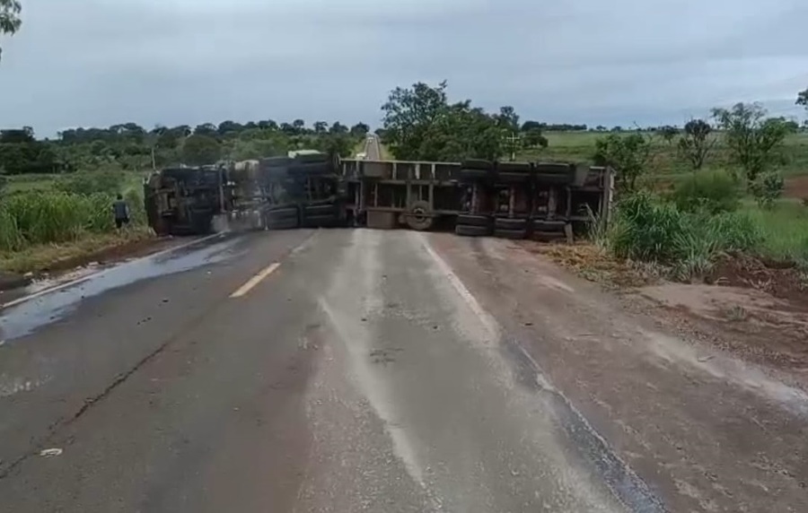 A carreta tombada estaria apresentando vazamento de óleo e aquele trecho da MS-134 está interditado até que haja a remoção do veículo cargueiro que acabou obstruindo os dois sentidos da via.