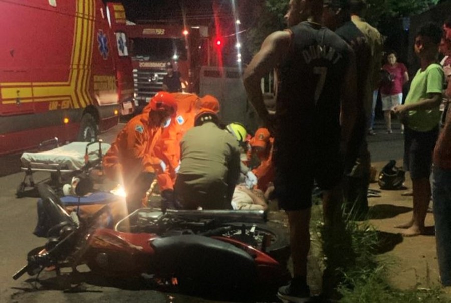 Na noite desta segunda-feira (12), um casal que estava em uma motocicleta se envolveu em um acidente com um carro na Rua Professor João de Lima Paes, próximo a uma distribuidora de bebidas, na região da Vila Operária, em Nova Andradina.
