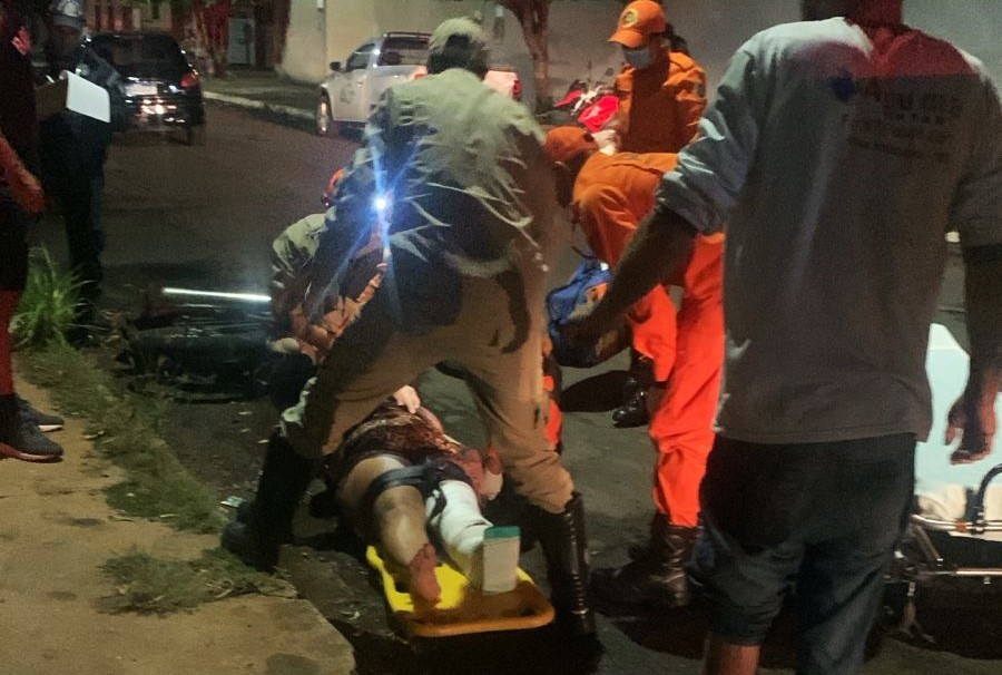 Devido à força do impacto, os ocupantes da motocicleta foram ao solo. A mulher ficou mais ferida e precisou ser socorrida pelo Corpo de Bombeiros Militar até uma unidade hospitalar.