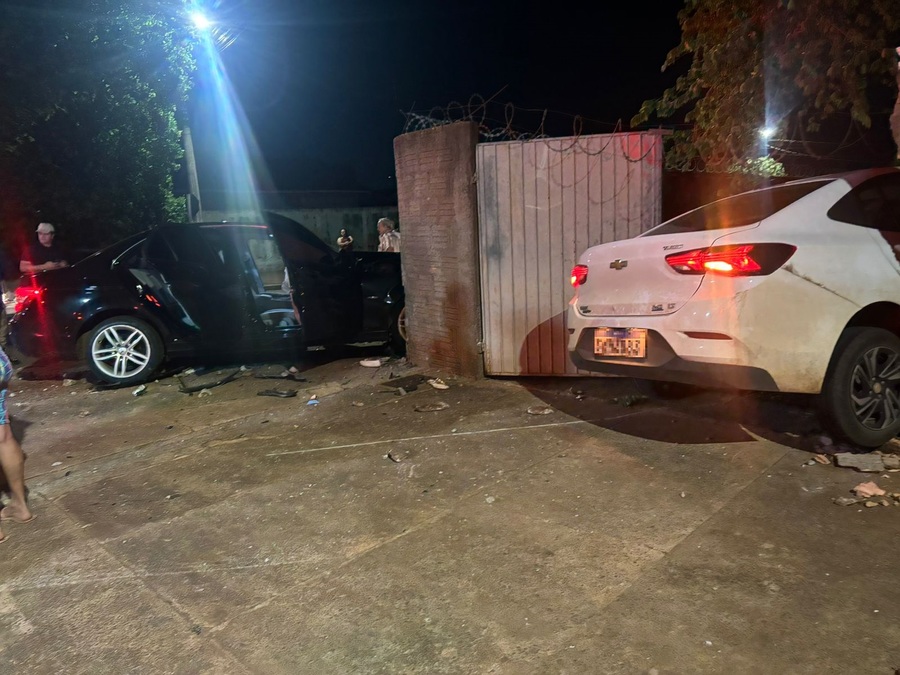 Na noite desta terça-feira (04), dois carros se chocaram entre si e acabaram colidindo contra o muro de um imóvel, no cruzamento da Rua Onofre Gonçalves Lopes com a Avenida Ivinhema, em Nova Andradina.